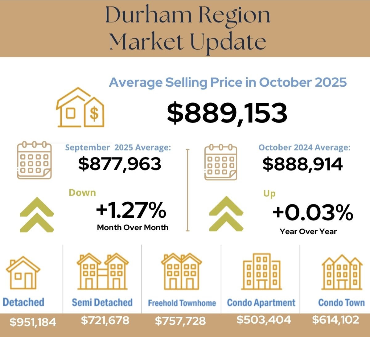 The Cornell housing market showed signs of stabilization in October 2025. The average selling price edged up to $1,016,392, a 0.87% increase month-over-month from September, while remaining 5.95% lower year-over-yearcompared to October 2024. Detached homes averaged $1,233,236, with semi-detached properties close behind at $1,020,967. Freehold townhomes sold for an average of $990,800, condo apartments averaged $630,000, and condo townhomes came in at $736,417. Overall, October reflected modest price growth month-over-month, suggesting renewed balance after September’s pullback, even as prices remained softer than last year.
