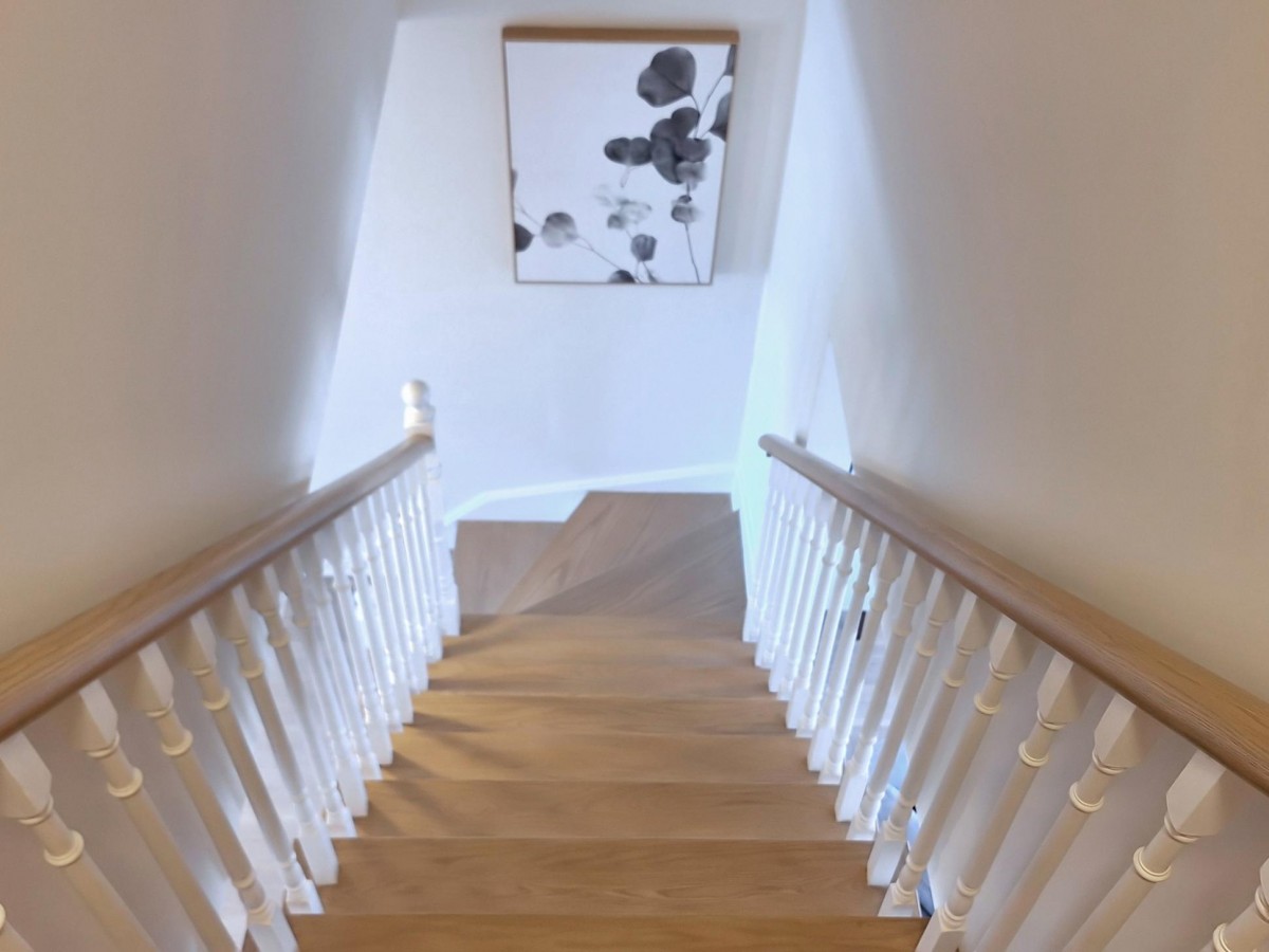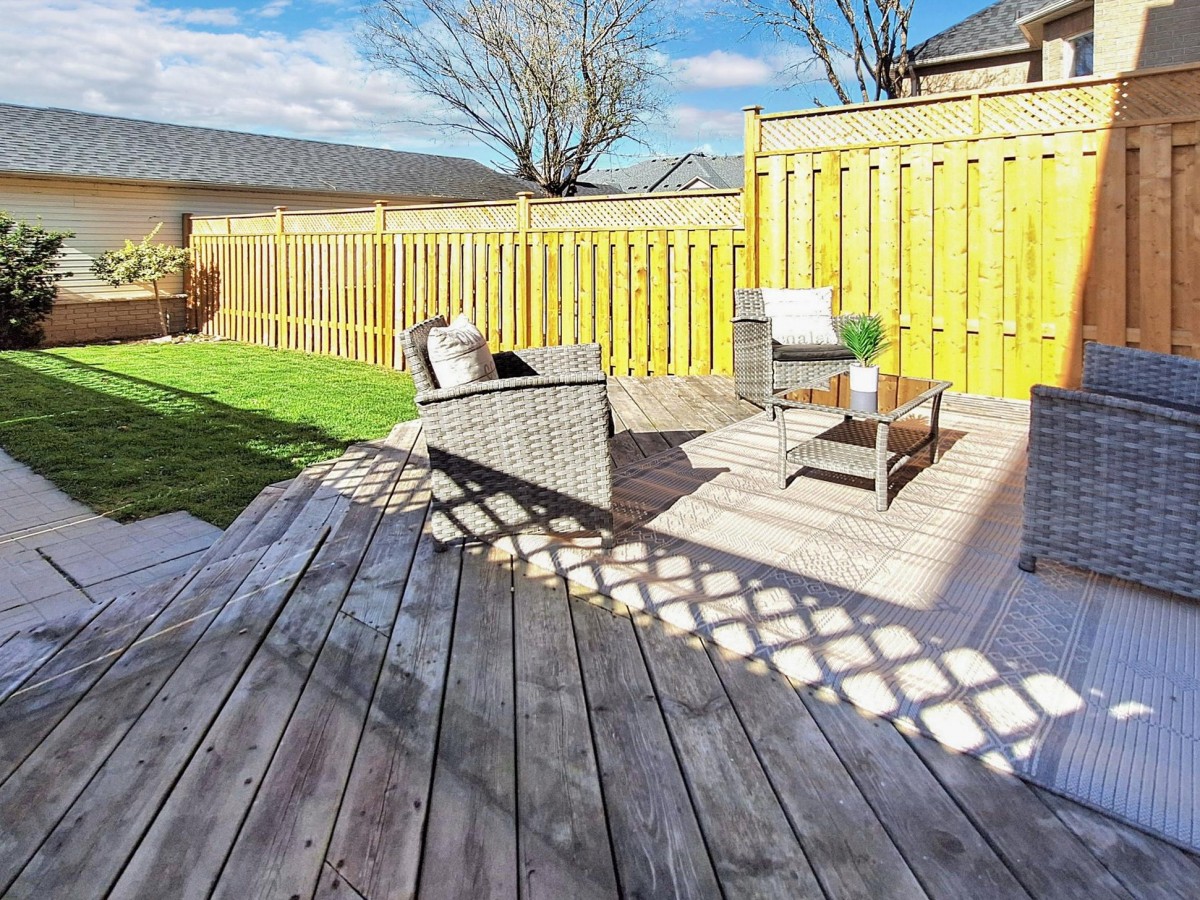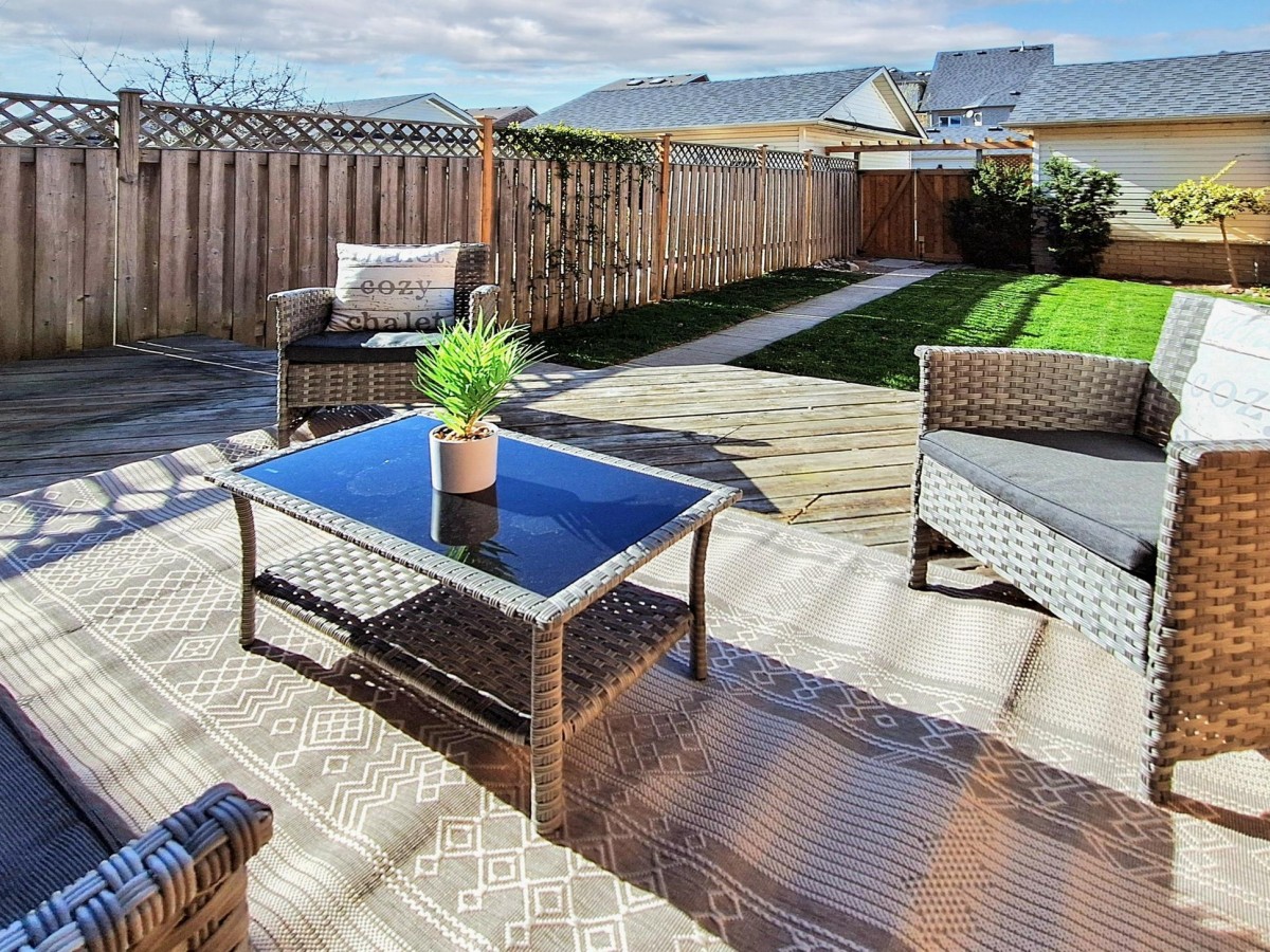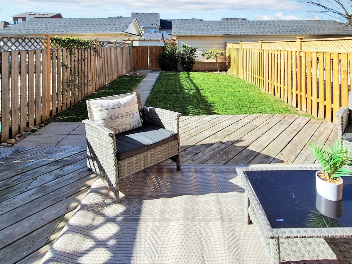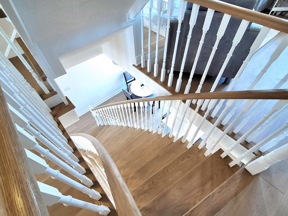 Ravishing on Riverlands That's right! You are going to want to ravish this showpiece of on-trend luxury in Original Cornell Village. This 3+1 bedroom, 4 bathroom freehold executive townhome has been fully renovated top to bottom. Enter up the stone walkway into the main floor with glorious 10 ceilings, crown moulding, and new hardwood floors. Embrace the elegant eat-in kitchen with quartz counters, breakfast bar-island, under-cabinet lighting, Carrara marble backsplash, and stainless steel appliances. Sashay up the hardwood floating staircase to a large open den - use as a home office, second family room, or wall-it-up for a fourth bedroom (builder originally offered this as an option). Also find two bedrooms and renovated 4-piece bathroom. The third floor principal bedroom retreat has a fireplace, vaulted ceiling, private balcony, and huge renovated 4 piece bathroom with soaker tub, quartz vanity, and separate shower with glass door. The basement features a finished rec room with beautiful bright 3-pc bathroom.Off the kitchen, access a deep backyard with wood deck ideal for dining and lounging. Includes a 1-car detached garage and 2 driveway.