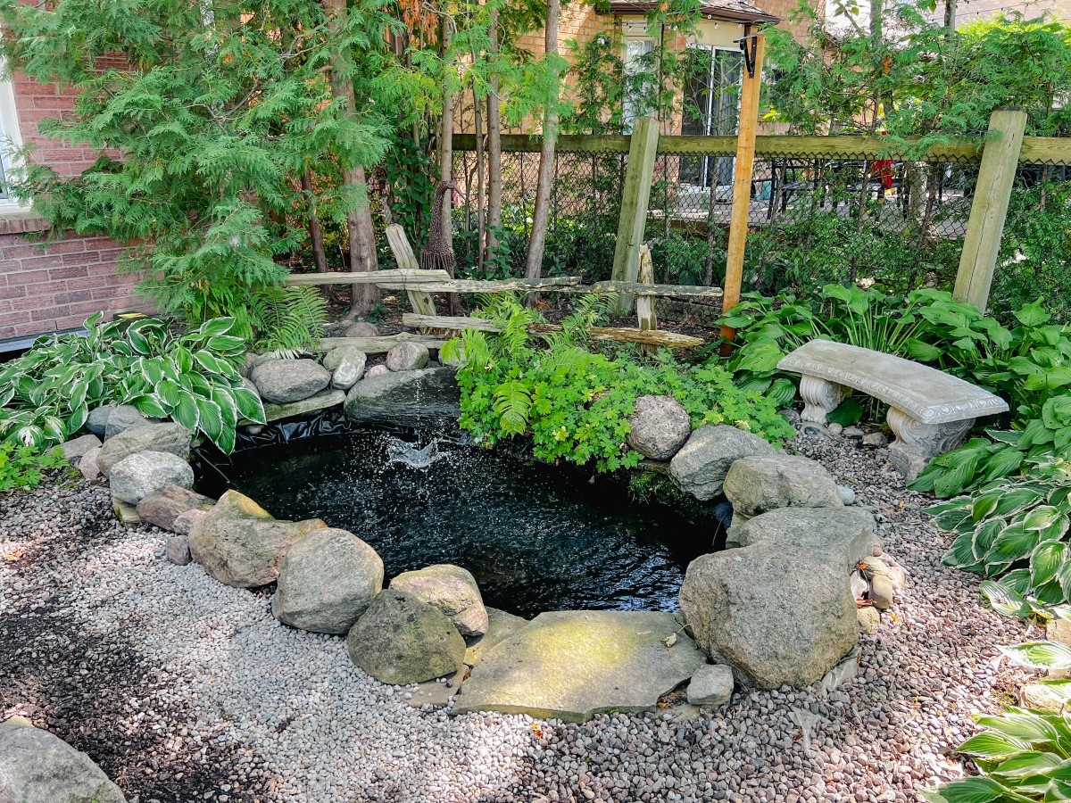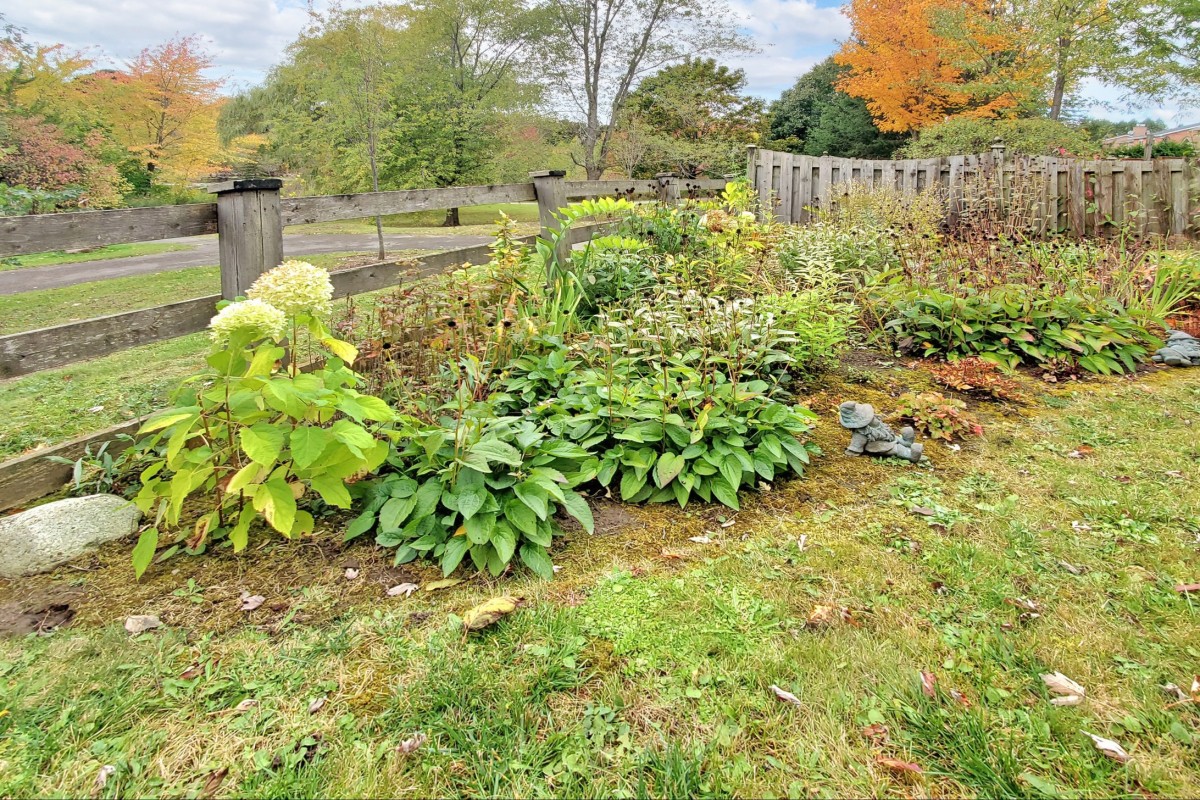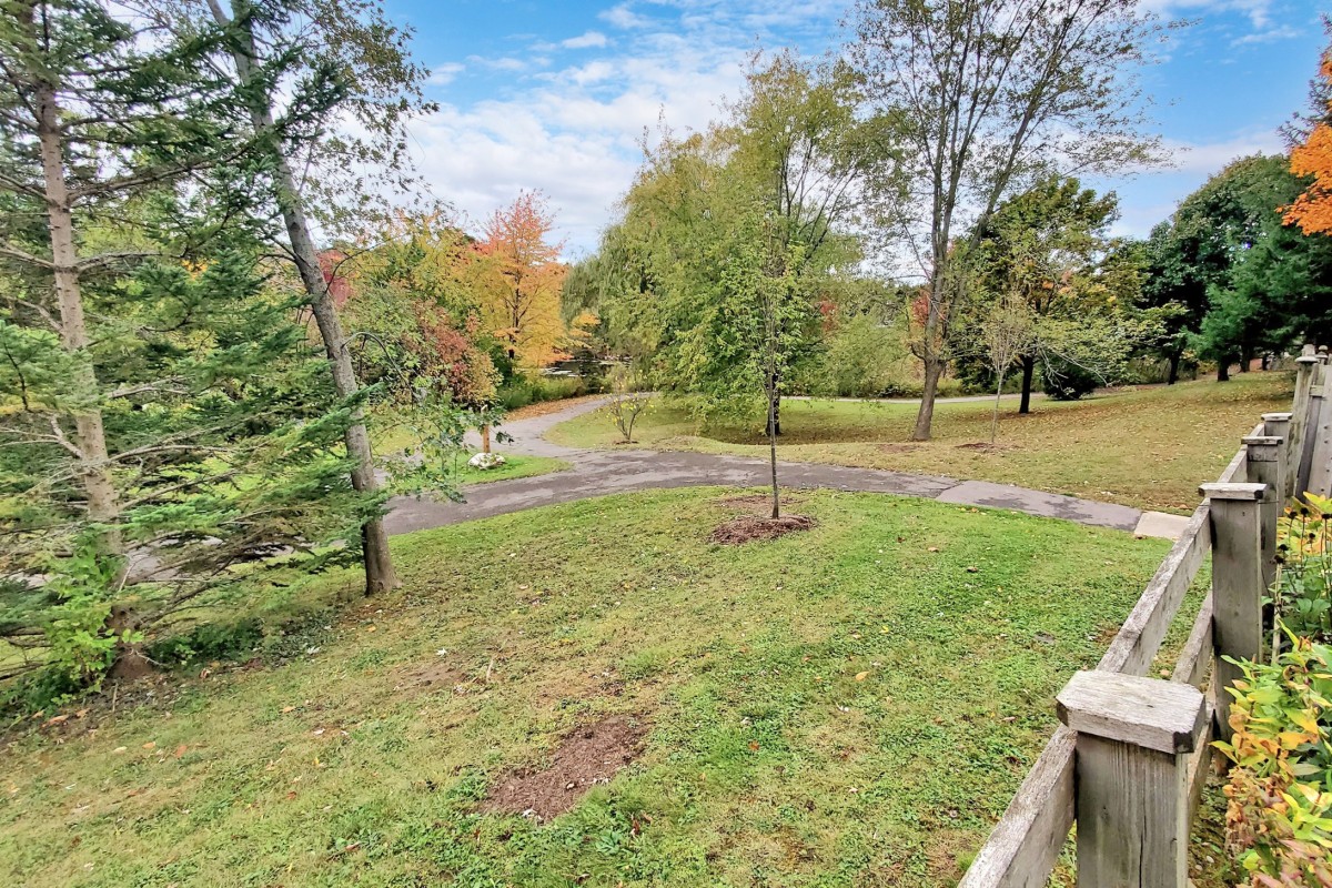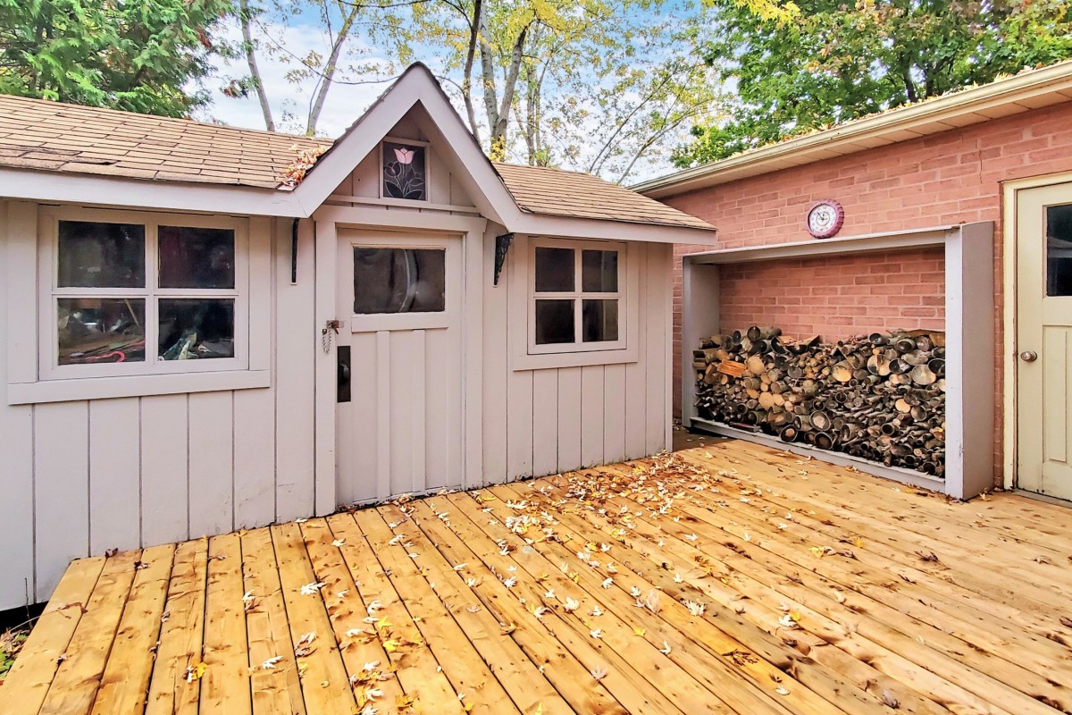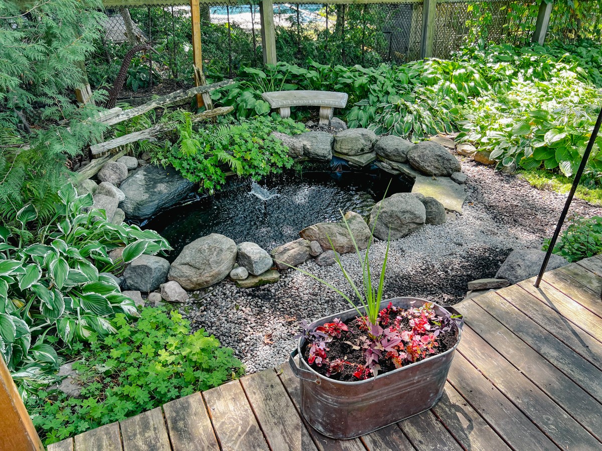 The super-deep backyard is picture-perfect with a pond, extensive wood deck, and large potting shed, and a to-die-for view of Quaker Common Park.