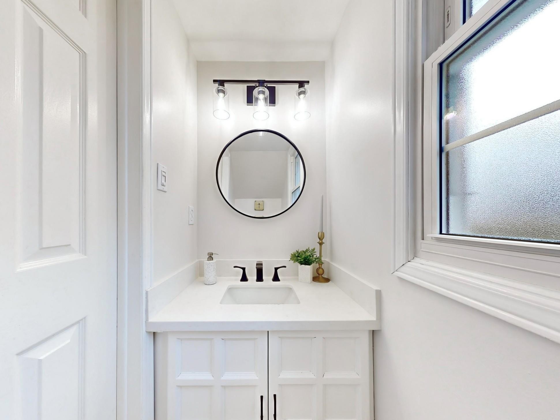 Upstairs, you’ll find three bedrooms and two full bathrooms including the primary suite with a renovated quartz vanity.